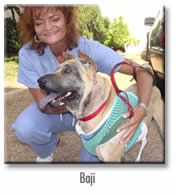 Mirage ruptured a spinal disc while "in the pound" and her rear limbs were paralyzed, requiring immediate emer-gency surgery. Soon after the surgery, Susan actually fostered Mirage in her own home for two weeks of intensive rehab. She always thought Mirage “could get it all back”; and now she runs, jumps and plays like a two-year old! When adopters came forward, Susan was so excited she offered to meet with them personally, and corresponded with them several times to assure a perfect match. The new owners wrote: